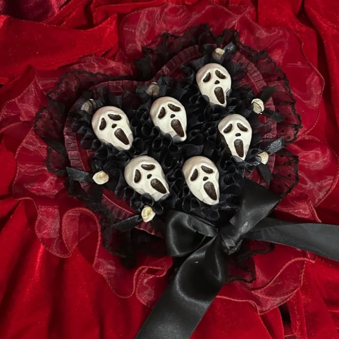 A heart chocolate box with Ghostface chocolates.